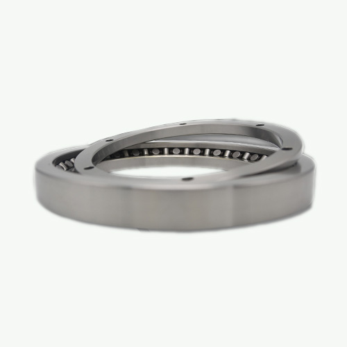 交叉圓錐滾子軸承包含有兩列相互垂直的軸承滾道和滾子組成。滾子在滾道上方向交替排列,在截面高度內(nèi),略超過(guò)單列軸承的高度。另外,軸承的傾斜角和圓錐幾何形狀會(huì)令各滾道的承載中心沿著軸線受到保護(hù),最后,總的有效軸承距離范圍比軸承本身的寬度要大很多倍。
